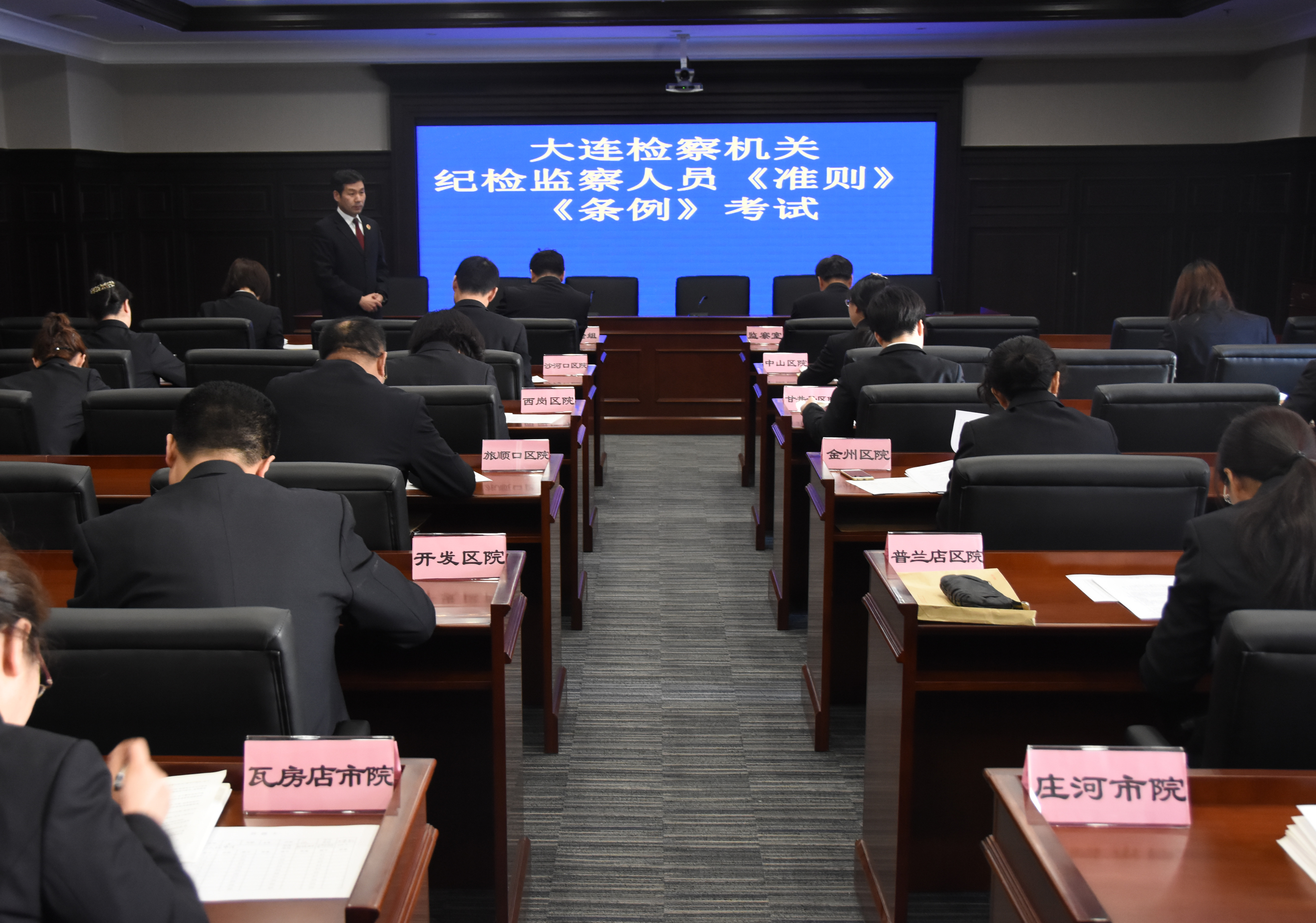 3月24日,大连市检察院组织全市检察机关全体纪检监察干部进行廉洁自律准则和党纪处分条例的考试,在积极参加“两学一做”学习教育的同时,进一步强化两级院纪检监察干部尊崇党章,依规治党,把纪律和规矩挺在前面的意识。