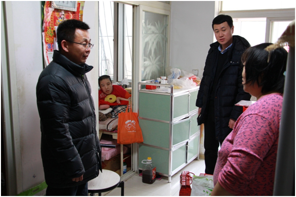 1月17日下午,反渎局侦查指挥中心党支部的同志们来到了位于皇姑区怒江街的渭河社区,走访困难群众。同志们将集体捐资购买的米面油、牛奶、肉类等生活必需品交到困难群众手中,并送上了干警亲手书写的春联,表达关心和慰问之情。困难群众对支部同志们的到来表示欢迎,衷心感谢大家的关爱。