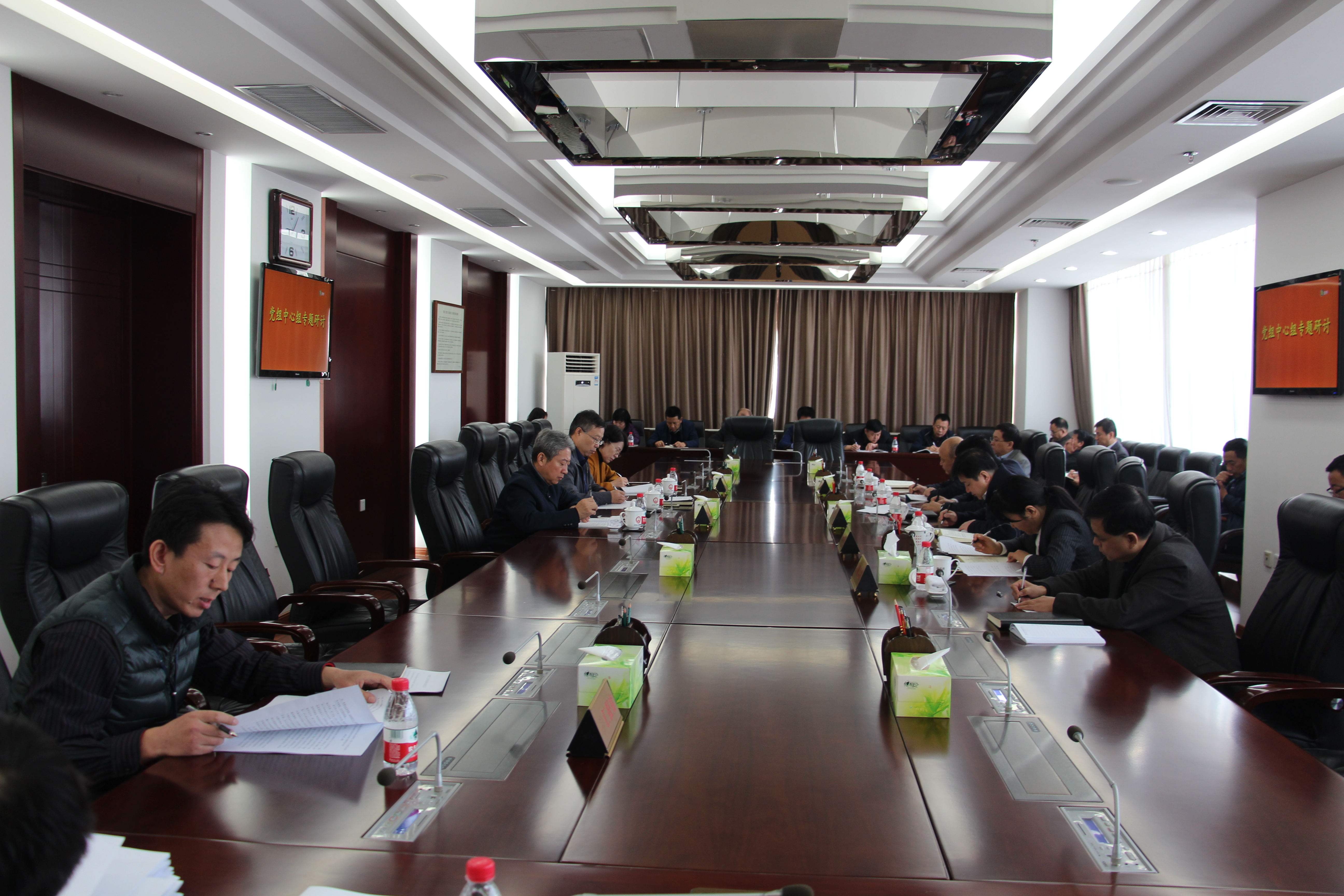10月25日,球速体育 召开党组中心组扩大会议,认真学习贯彻落实党的十九大会议精神。球速体育 领导班子成员、检委会专职委员、副厅级检察员和内设机构负责人参加了会议。