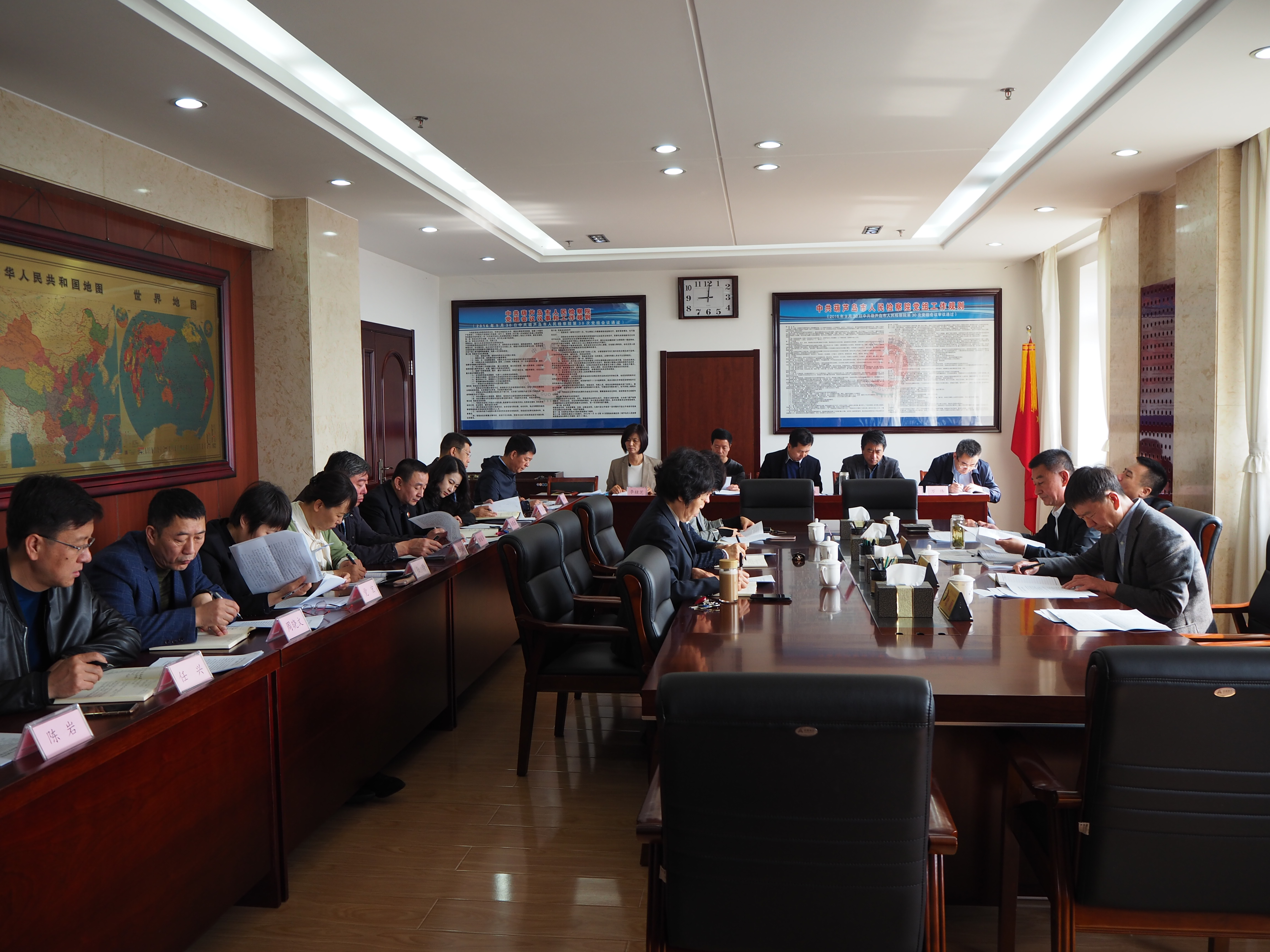 近日,葫芦岛市检察院召开第五次党组理论学习中心组扩大会议,市院党组成员和中层以上负责人参加会议。会议以集体领学方式组织学习了《中国共产党党组工作条例》和习近平总书记在主持中共中央政治局第十一次集体学习时的重要讲话精神、习近平总书记参加代表团时发表的重要讲话精神。就学习贯彻落实《条例》和学习习近平总书记系列重要讲话精神,三名同志作了中心发言。市院党组书记、检察长邢学军主持会议,并对学习好、宣传好、贯彻好《条例》和习近平总书记重要讲话精神提出明确要求,作出重要部署。