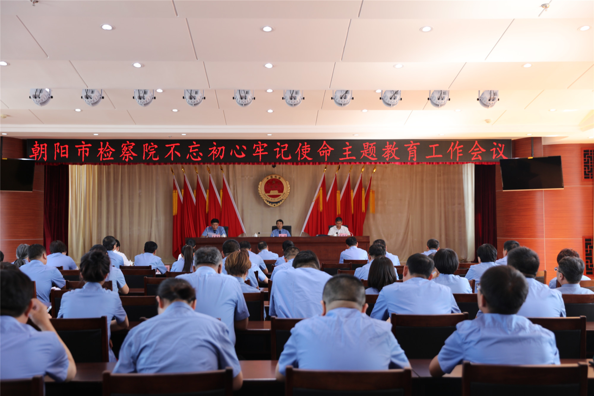 朝阳市委主题教育第一巡回指导组全体成员,市院领导班子成员及全体检察干警参加会议。