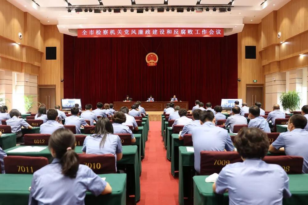会议以电视电话会议形式在全市两级检察机关召开,市院全体干警在主会场参加会议,基层院全体干警在分会场参加会议。