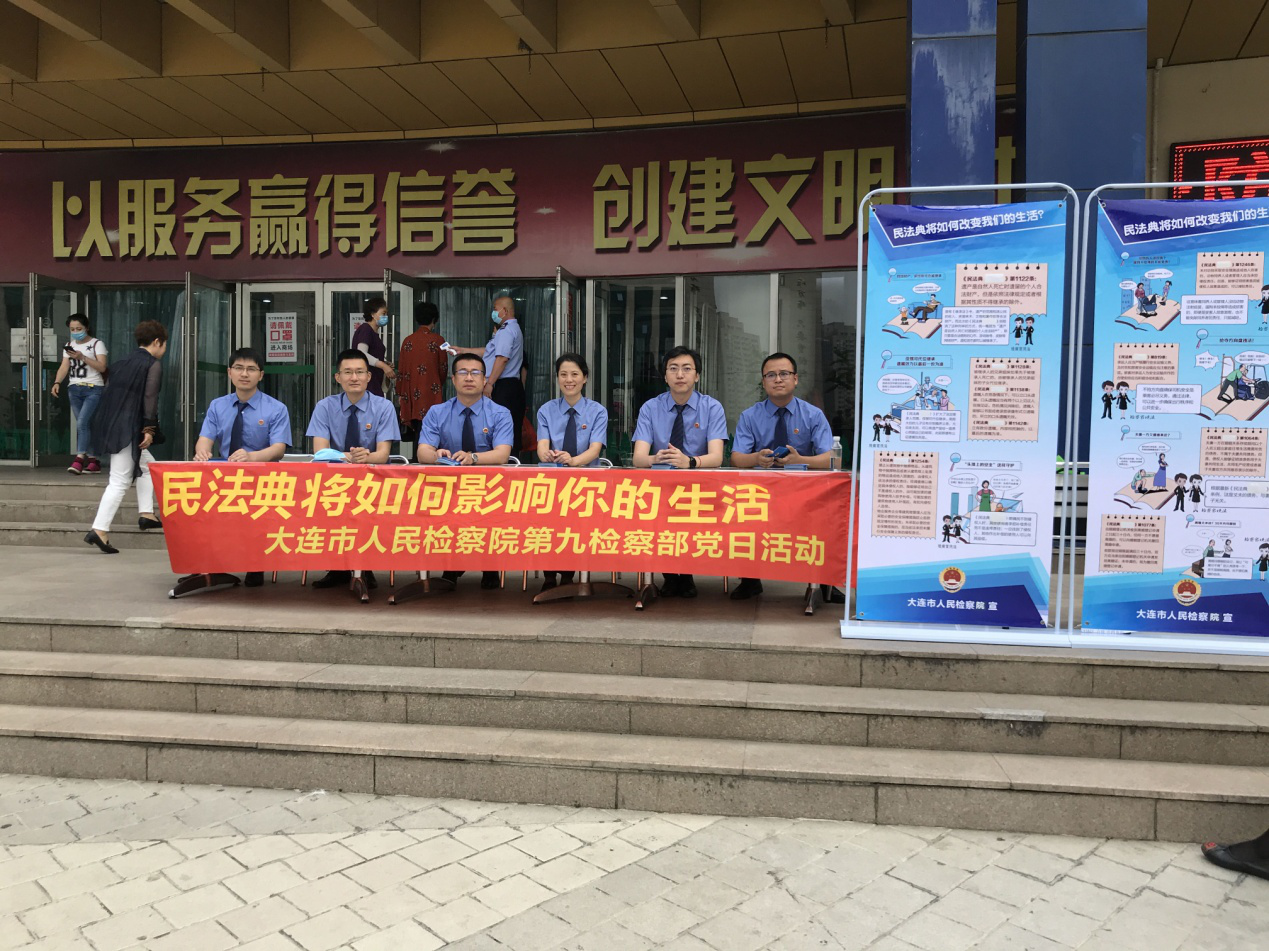 为了让民法典走到群众身边、走进群众心里,引导群众养成自觉守法的意识,大连市院第九检察部于6月18日开展了以“《民法典》将如何影响你的生活”为主题的党日活动。在活动现场悬挂了宣传条幅、搭建了宣传展架,干警们向来往群众发放了精心制作的《民法典》宣传彩页,讲解了《民法典》通过的背景、过程、重点内容,同时向现场群众介绍了检察机关查办司法机关工作人员职务犯罪的相关职能。累计发放宣传材料近300份,解答群众咨询20余次。