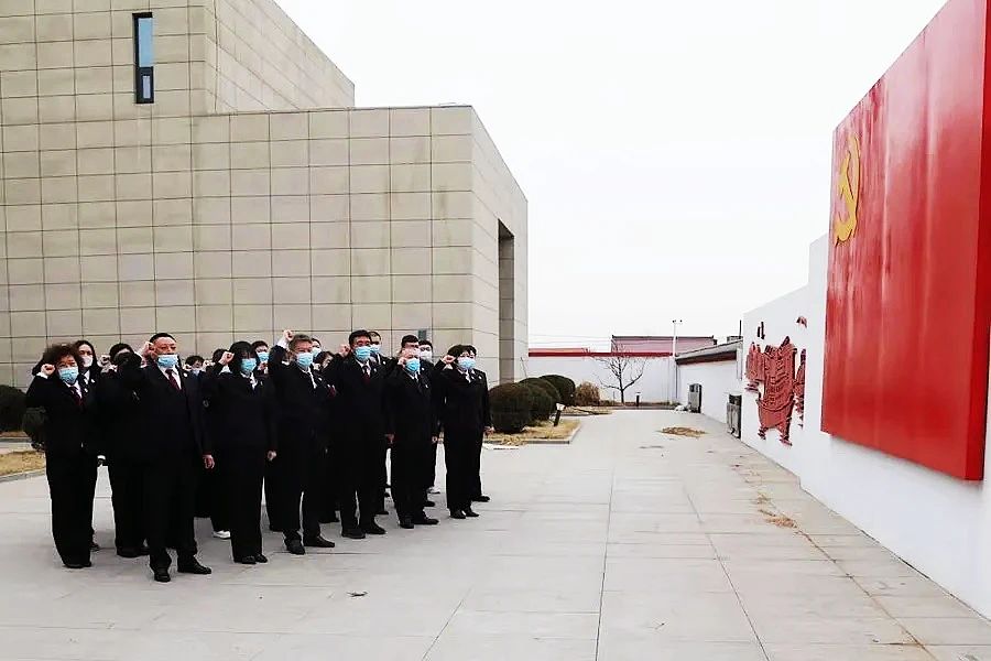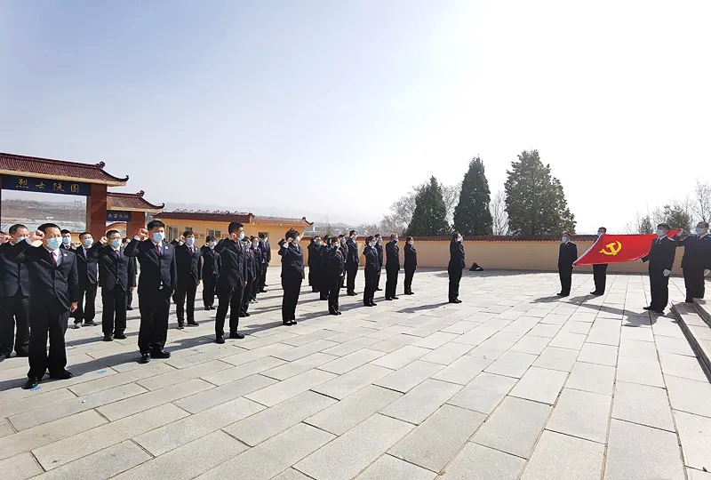 ▲盖州市检察院干警在烈士陵园缅怀先烈,面向党旗重温入党誓词