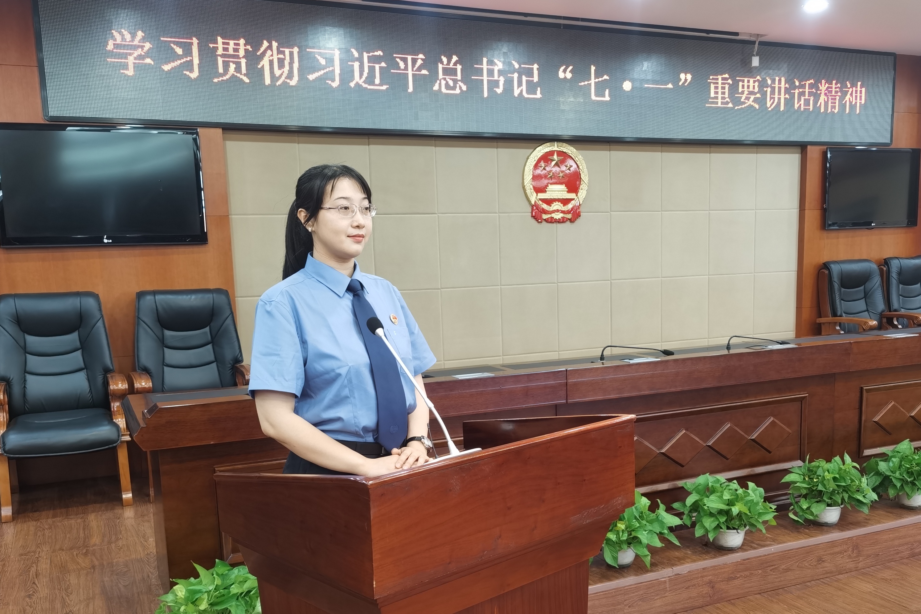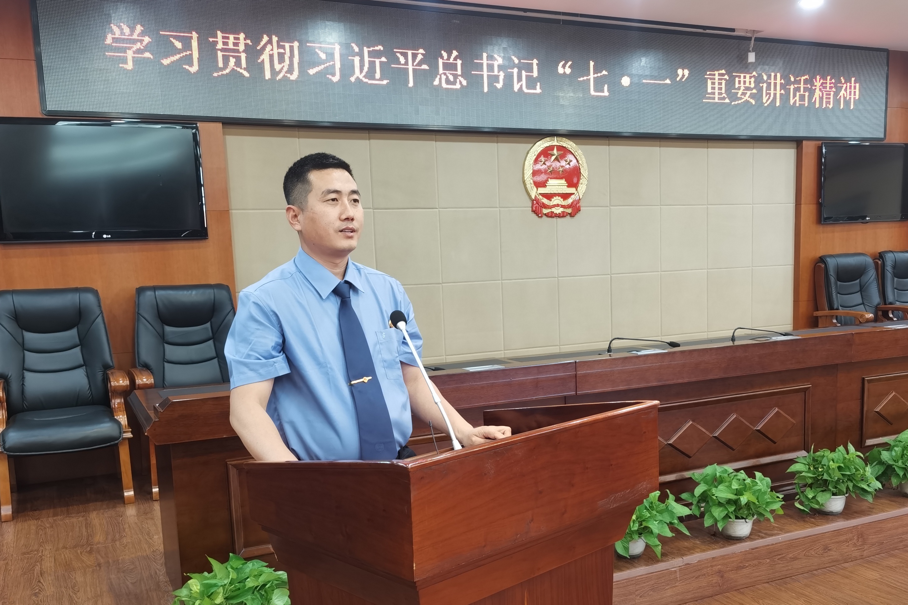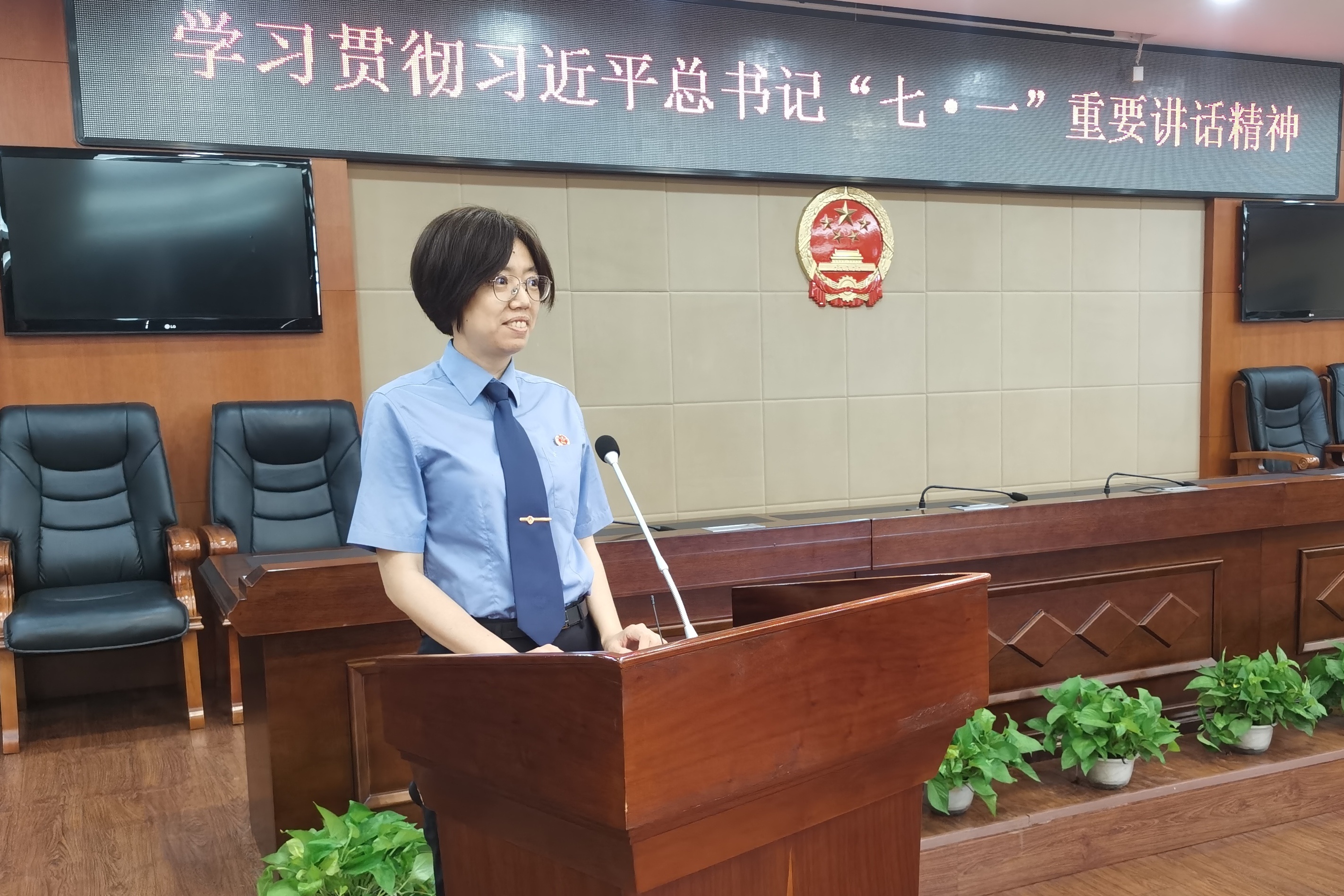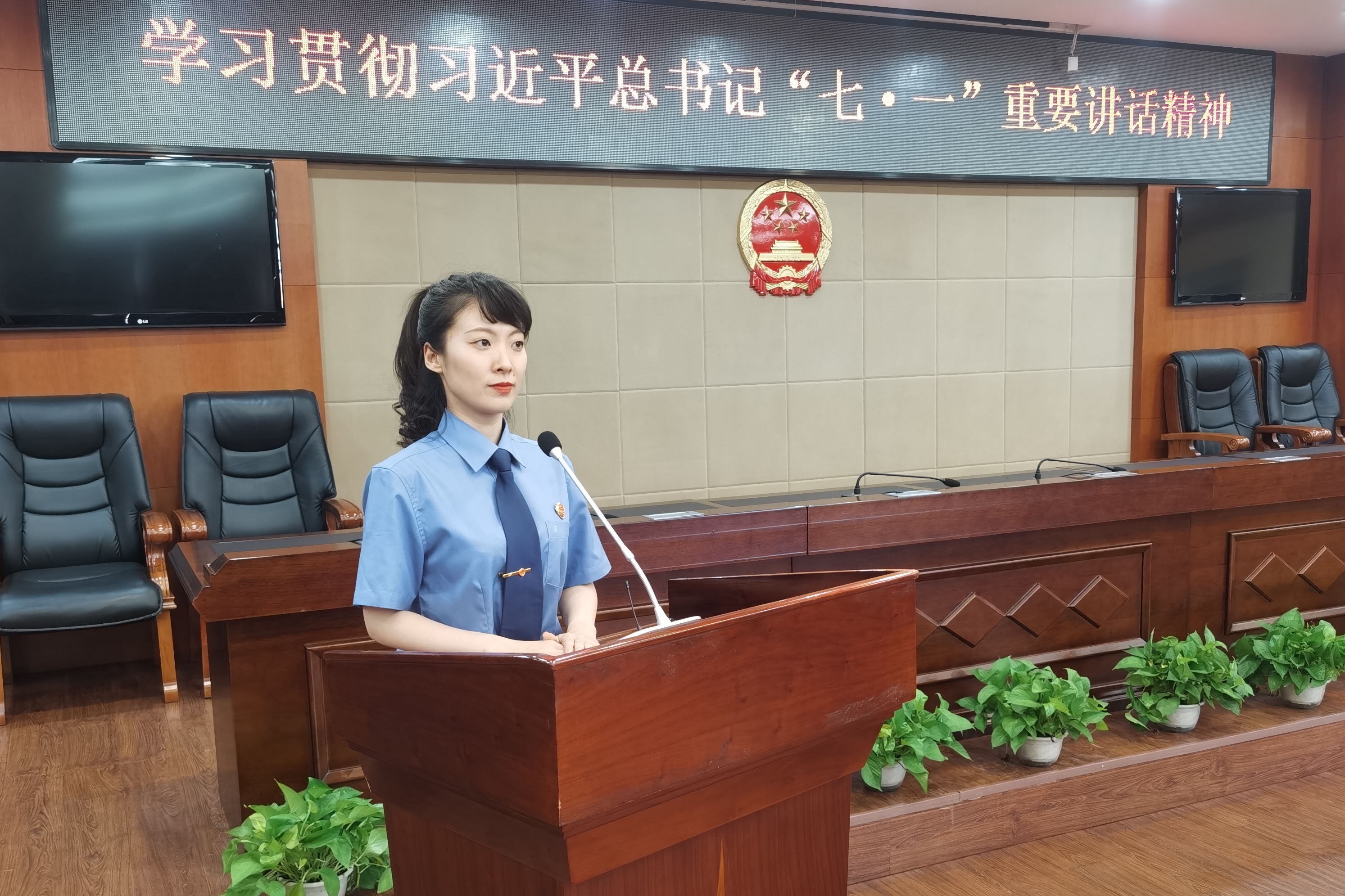 为更好学习贯彻习近平总书记在庆祝大会上的的重要讲话精神,继续传承红色基因,赓续共产党人的精神血脉,进一步激发全体干警的爱党之情、报国之志,展现铁检干警砥砺奋进、锐意进取的精神风采,提升检察队伍建设水平,助力沈铁检察机关实现“四个一流”奋斗目标,结合沈铁检察机关开展党史学习教育方案安排,7月1日下午,沈铁检察分院组织召开干警大会,围绕学习贯彻习近平总书记“七·一”重要讲话精神进行交流发言。