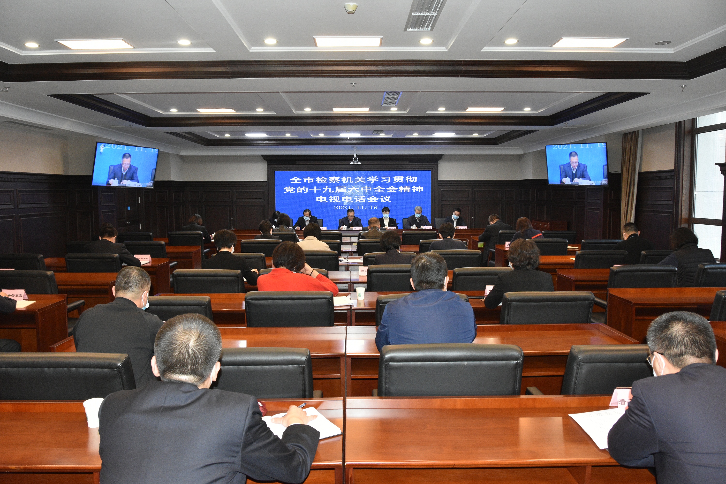 近日,大连市检察院召开党组理论学习中心组集中(扩大)学习暨全市检察机关电视电话会议,传达学习贯彻党的十九届六中全会精神。市检察院党组书记、代检察长周焱主持会议并传达领学。市检察院党组理论学习中心组成员围绕学习贯彻党的十九届六中全会精神进行了交流发言。两级检察院领导班子成员、驻院纪检监察组组长,其它副院级领导干部,各内设机构负责人参加了电视电话会议。