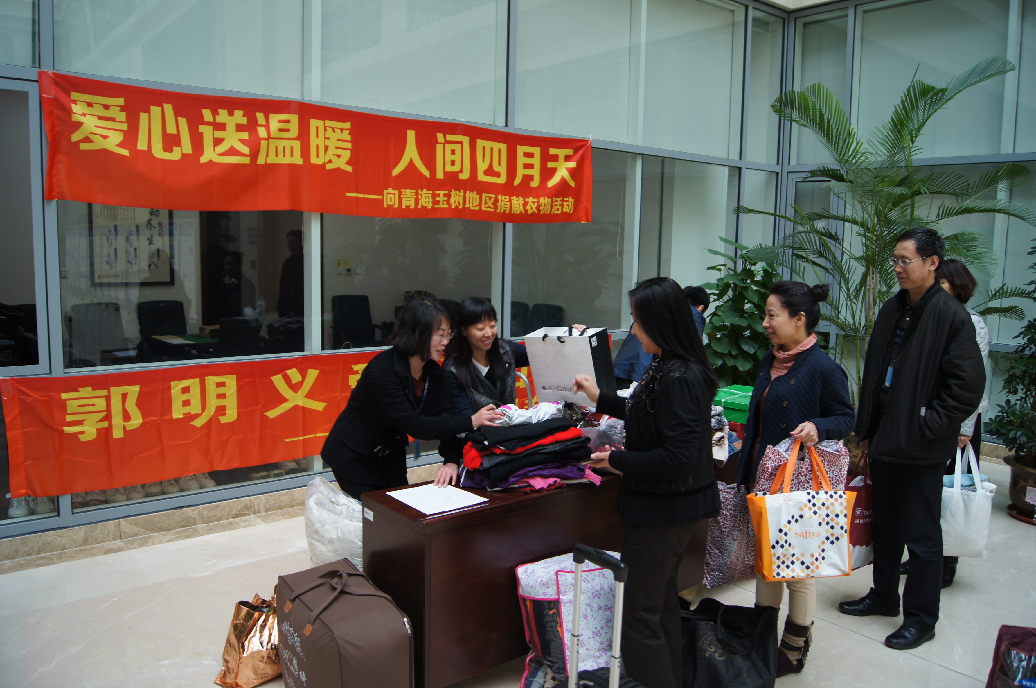 机关分队的志愿者们立刻行动起来,号召在全院开展“爱心送温暖,人间四月天——向青海玉树地区捐赠衣物活动”。这一提议得到院领导的大力支持和全院干警的热烈响应,大家纷纷捐出家里闲置的过冬衣物,细心清洗干净,送到爱心小分队设立的捐赠处。短短一周时间,收到毛/绒/棉衣(裤)、羽绒服、棉被、鞋子、床单被罩等各类衣物798件,其中有很多是全新衣物。爱心小分队对每件衣物进行了分类登记、整理打包。10月28日,满载着全院干警一片爱心的二十余包衣物被志愿者们亲手送交邮局,它们将传递到青海省玉树州称多县万聚爱心公益协会,由那里的志愿者们送到最需要它们的灾区人民手中。