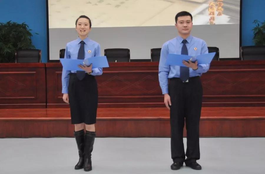 (铁岭市检察机关迎新春汇报会,青年干警表演诗朗诵,右一为作者)