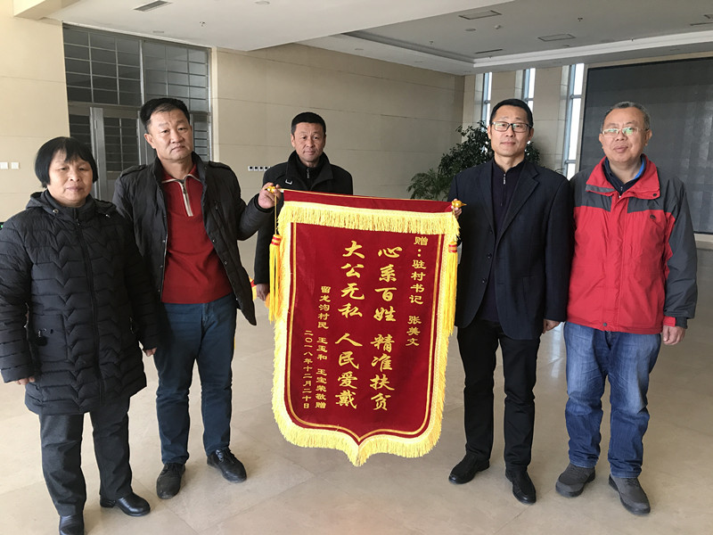 近日,锦州市义县留龙沟村村书记张春风、村主任石成中、妇联主任刘素敏一行将一面红底金字的锦旗送到了锦州市检察院,上书“心系百姓,精准扶贫,大公无私,爱戴”,代表留龙沟村全体村民对张美文书记近两年来为留龙沟村精准扶贫事业做出的贡献表示感谢。