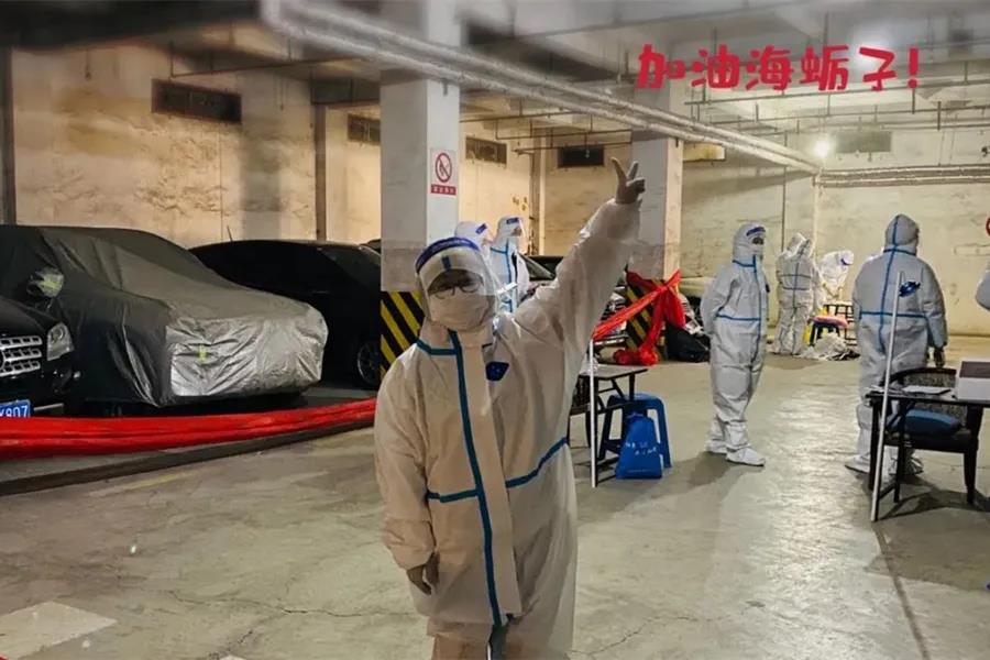 黄海燕:“一切发生得太偶然,本来是在排队等待二次检测,发现现场需要人手就响应了一下,结果就开始了‘提心吊胆’的一天。原以为登记拼手速就可以了,没想到,一穿上防护服就遇到了眼镜起雾的问题,羽绒服脱了好很多,后面的问题省略1000字……现在只剩下惊魂未定的心情和脑子里不断在回忆的编号、试剂管……当然,还有那些温暖的时刻——大叔怕你累坏眼睛给你举着灯,小美女怕你记混了自己大声念的数字,还有外国友人对你说声‘辛苦了’……此刻,无比敬佩一线工作人员。最后,谢谢社区的信任,一天的经历毕生难忘!也要谢谢宝宝的听话,但是妈妈真的把你忘了……”