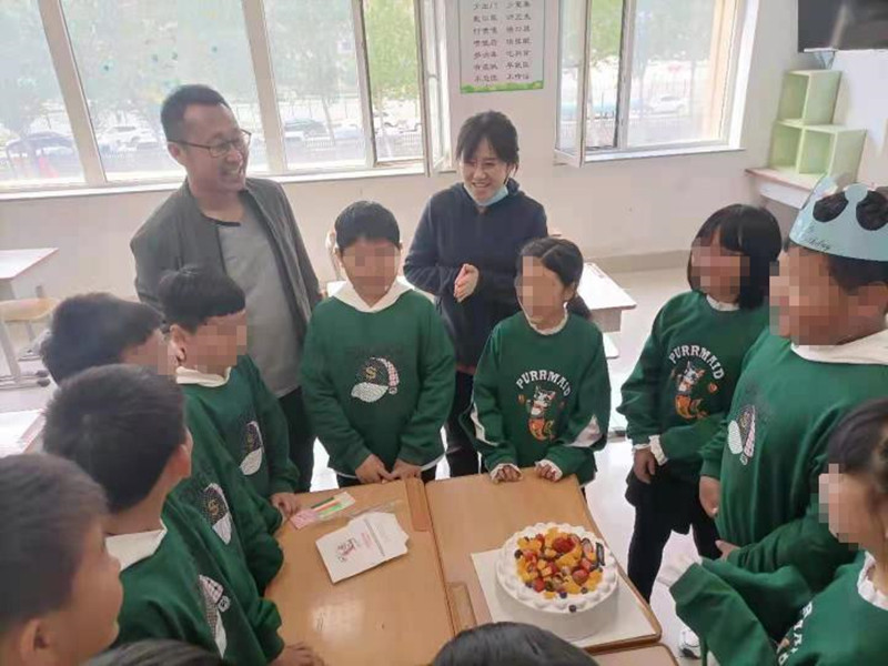 当爱心团队端出为小亮精心准备的蛋糕时,小朋友的眼睛亮了起来,他说:“叔叔阿姨,我可不可以把我的小伙伴们也叫过来一起分享?”爱心团队当然要呵护小亮分享美好的善意,同时也乐见这份温暖能够传递给更多的孩子。在得到肯定后,小家伙马上兴奋的跑了出去,叫来了一众好朋友。大家聚在一起给小亮唱生日快乐歌,在歌声中爱心团队看到了他在学校中收获了友情,他们是彼此的依靠,也是共同向阳茁壮成长的力量。