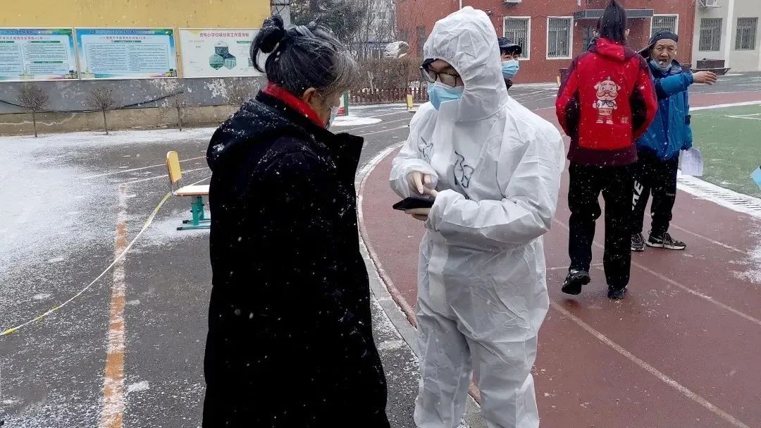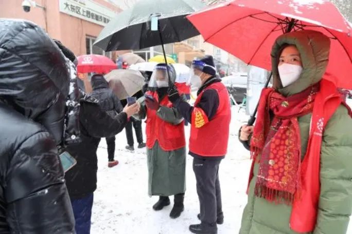 3月18日是检察干警支援社区核酸检测的第十天。早上,沈城上空雪花飘落,干警们依旧如常,安排好手头的工作,穿上红马甲,戴起红袖标,做好个人防护,来到社区的各个点位参与疫情防控工作。