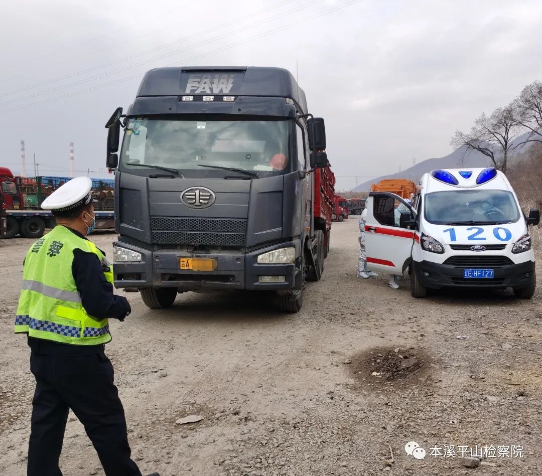 “兄弟,不要怕,120马上就来了。到本溪就是到家了,你放一百个心吧!”本溪市平山区检察院干警庞茂盛、教大为对突发脑梗的大货车司机陈某某安慰道。