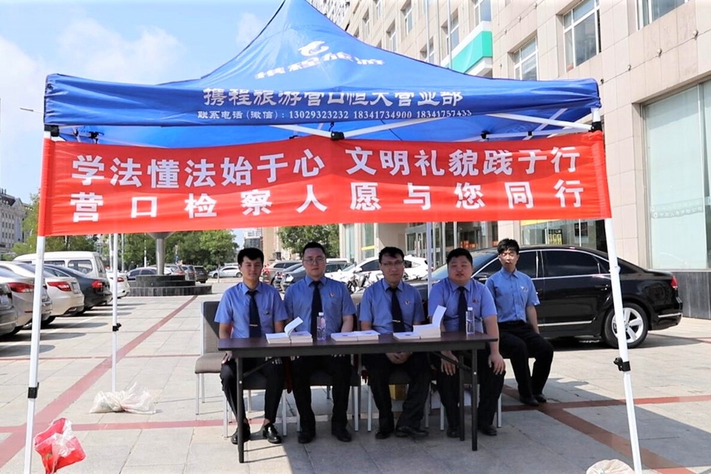 “学法懂法始于心,文明礼貌践于行,营口检察人愿与您同行”。