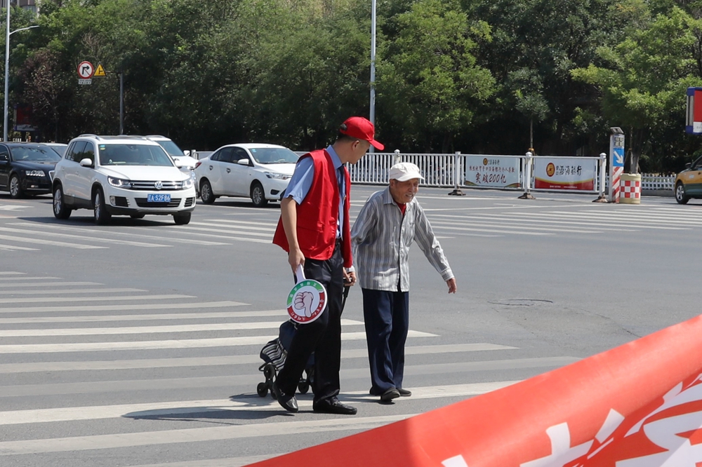 活动期间,志愿者们在新华路与渤海大街交汇路口进行文明交通引导,配合交警对非机动车、行人闯红灯、逆行、不在等候区等候交通信号灯指引等不文明交通行为进行文明劝导和纠正。