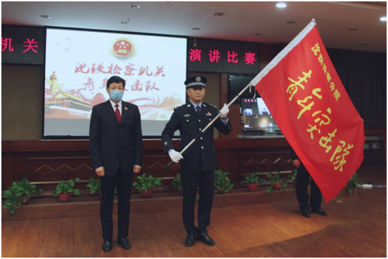 在热烈的气氛中,分院党组书记、检察长郑辉同志郑重向“青年突击队”队长授旗并发表讲话。他指出,旗帜引领方向,旗帜激励力量。青年突击队作为沈铁检察机关的一个崭新团队,要以蓬勃的青春力量履职担当,让青年突击队的旗帜在沈铁两级院高高飘扬。郑辉书记向广大青年干警提出了要求:一是要志存高远,坚定理想信念。要真正把习近平新时代中国特色社会主义思想学懂弄通做实,树牢“四个意识”,坚定“四个自信”,以“不忘初心、牢记使命”的绝对忠诚和无私奉献,坚决做到“两个维护”。二是要苦练内功,锤炼过硬本领。要不断掌握新知识、熟悉新领域、开拓新视野,久久为功地抓好理论学习与业务提升,在实践课堂中经风雨、见世面、壮筋骨、长才干。三是要砥砺奋进,勇于担当作为。要不断增强对岗位的担当精神和责任意识,在“四个一流”争创目标的引领下砥砺向前。郑辉书记鼓励大家要发扬“青年突击队”精神,在各种“急难险重”的任务面前敢为人先、不畏艰险,勇于冲锋在前,攻坚克难,为沈铁检察工作贡献力量。