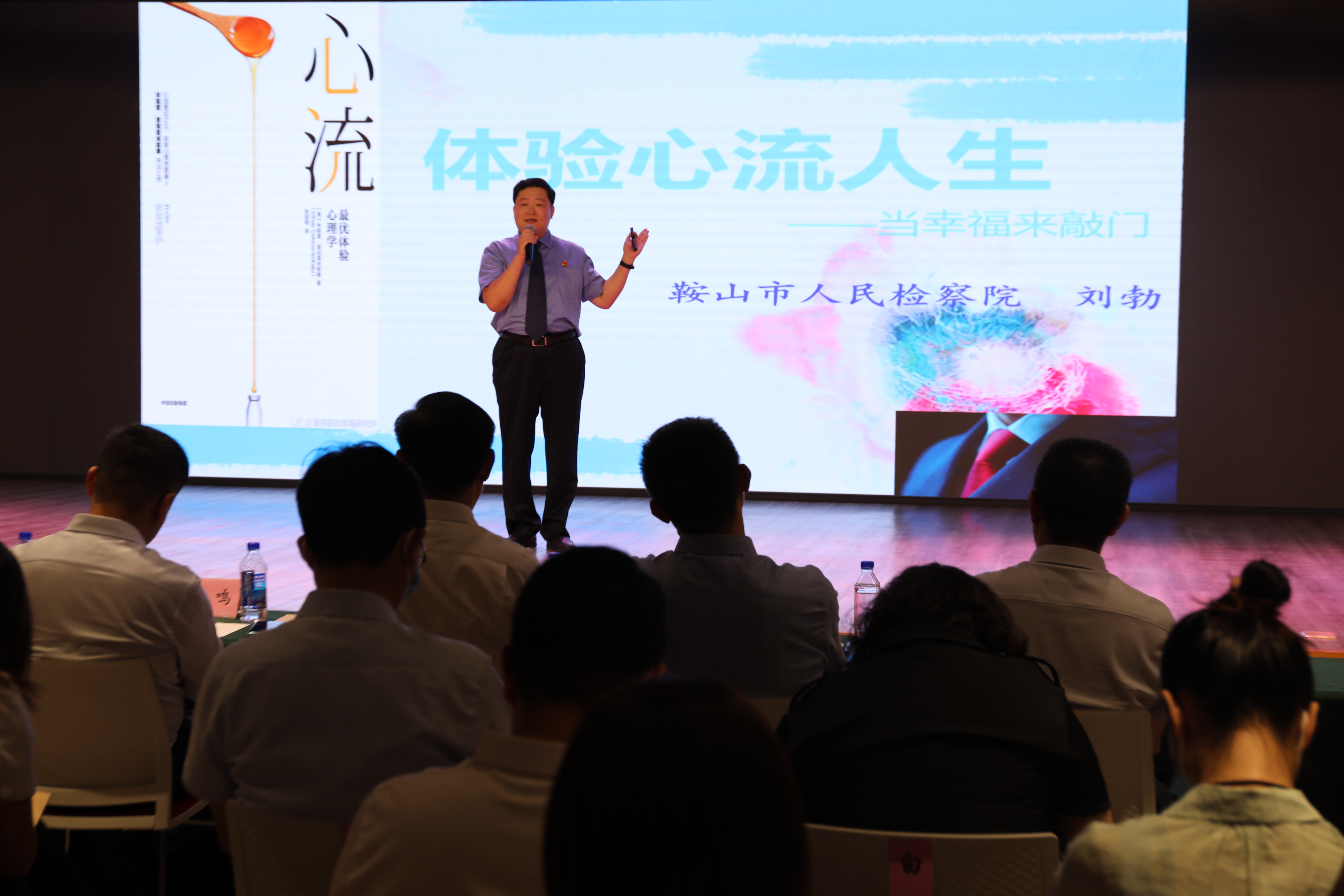 6月23日,鞍山市市直机关青年理论学习组成立大会暨市直机关青年党员干部读书分享会举行。鞍山市检察院检察官助理刘勃为全市73个市直单位和248个青年理论学习小组做了读书体会《体验心流人生——当幸福来敲门》的精彩演讲,受到与会青年的高度认同。