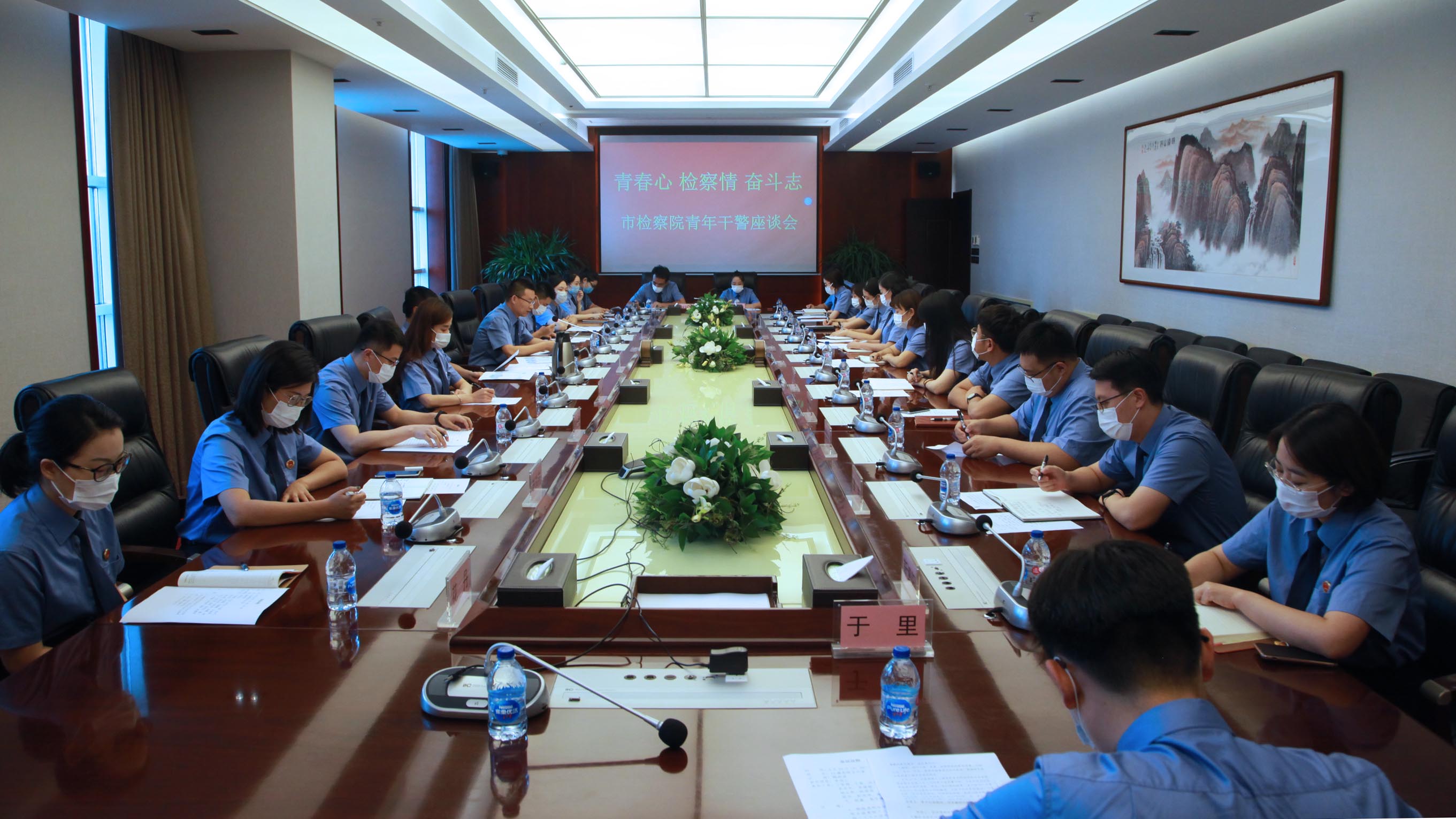 “我国广大青年要坚定理想信念,培育高尚品格,练就过硬本领,勇于创新创造,矢志艰苦奋斗,同亿万人民一道,在矢志奋斗中谱写新时代的青春之歌。”日前,习近平总书记致信祝贺全国青联十三届全委会和全国学联二十七大召开,关怀暖人心田,嘱托催人奋进,为进一步激发广大青年干警坚定跟党走,奋进新时代,8月20日,沈阳市检察院召开“青春心 检察情 奋斗志”青年干警座谈会。市检察院党组成员、政治部主任、青委会主任李冠山参加会议。