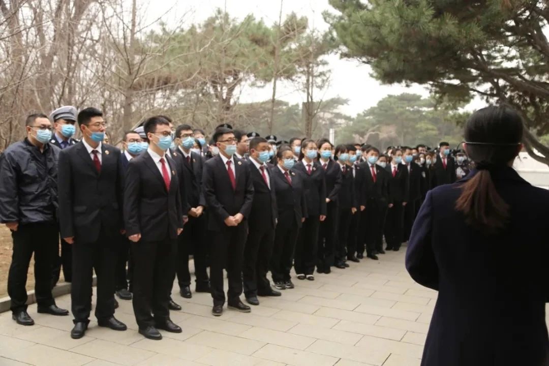 4月2日,锦州市凌河区检察院全体干警来到辽沈战役烈士陵园,开展祭扫烈士墓活动,深情悼念为了解放事业而长眠于此的革命烈士,深切缅怀革命先烈们的丰功伟绩,表达无限哀思和景仰之情。干警们排着整齐的队伍,庄严肃穆地敬献花束并鞠躬默哀。随后,干警们面对党旗重温了入党誓词。