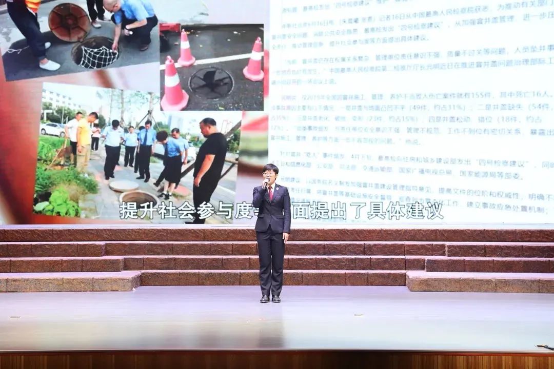 讲述会现场,15名干警分别以深挖线索、指控犯罪,开展司法救助,展现检察关怀和温度;做好公益诉讼检察工作,守护绿水青山,保障舌尖安全;落实四号检察建议,修复窨井盖,保障“脚底下”安全;深入开展未成年人特殊检察制度,促进未成年人权益综合性保护等为主题进行讲述。其中既有惩恶扬善的集体群像,也有深耕岗位的先进典型,展现出抚顺检察人服务大局的担当、司法为民的匠心、务实高效的工作作风,赢得了与会人员的阵阵掌声。