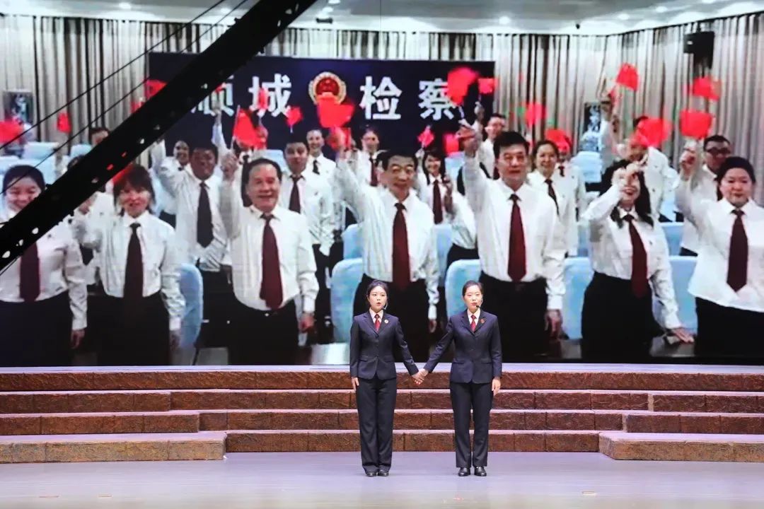 ▲市委政法委、市委直属机关工委领导及市检察院、县(区)检察院党组成员一同观看讲述会