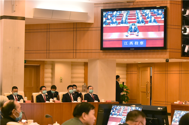 江西球速体育 党组书记、检察长田云鹏,陕西球速体育 党组书记、检察长王旭光以视频形式分别发言。