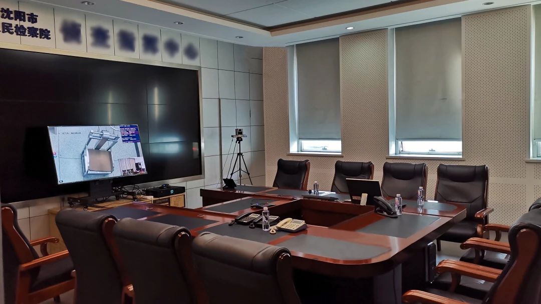 在征得法院同意后,市检察院立即行动,与皇姑区检察院技术人员用最短的时间完成与皇姑区看守所的线路调试,并反复测试音画效果。考虑到诉讼各方人员较多,技术信息部门的同志们精益求精,将现有远程设备整体搬迁到会议室,并按照法庭格局布置,“临时法庭”就这样在沈阳市检察院的办案区内搭建好了。