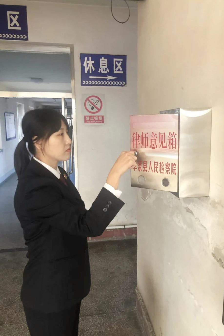 ▲阜新市检察院干警开启“律师意见箱”了解诉求