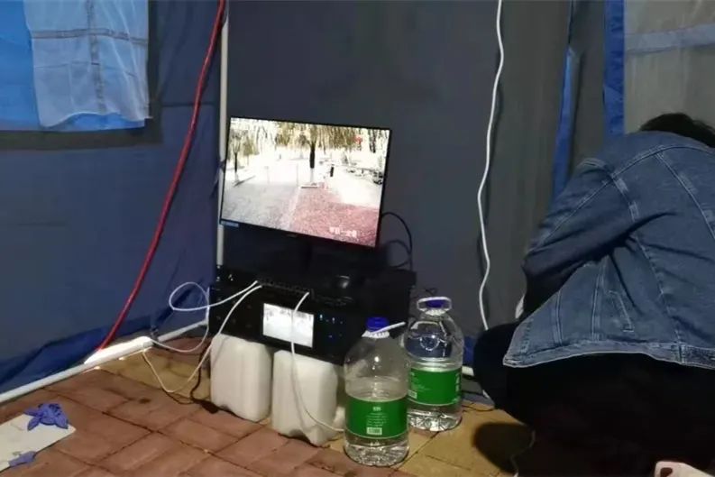 随着夜幕降临,新的问题又出现了。低温条件下一直在室外执勤谁也受不了,如果待在帐篷里又不利于对卡点的“严防死守”。干警们想到了一个好办法,利用单位之前更换掉的旧监控设备,变“人防”为“人防+技防”,在卡点周边布设“天眼”。