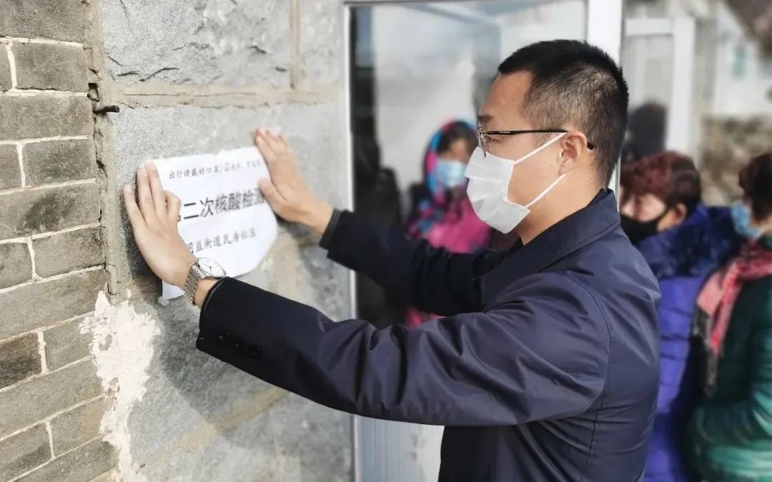检察院派驻炮台街道炮台村第一书记杨宁组织村民开展第一次全员核酸检测期间,正逢天降大雪,村里常住人口加上附近工厂工人和临近村子的村民,接受检测的人数超过3000人,现场检测与协调工作面临了极大的考验。面对困难,他顶住压力,连续6个小时没有休息,直到全员检测完毕。之后的两周,杨宁始终驻守在村里,配合组织完成了5次全员核酸检测任务。