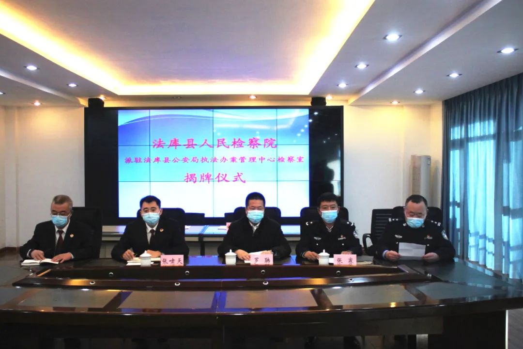 1月6日,法库县检察院派驻公安局执法办案中心检察室正式揭牌运行。法库县委常委、政法委书记罗聃,法库县政府副县长、公安局局长张赛,法库县检察院党组书记、检察长张啸天出席活动。