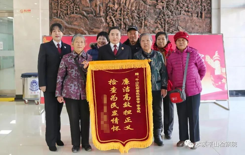 近日,受害人谢阿姨与其他受害老人一道手捧锦旗来到本溪市平山区检察院,老人们眼含热泪地对检察官说:“四年了,感谢人民检察官,为我们追回了财产损失,我们终于能过个舒心年了!”