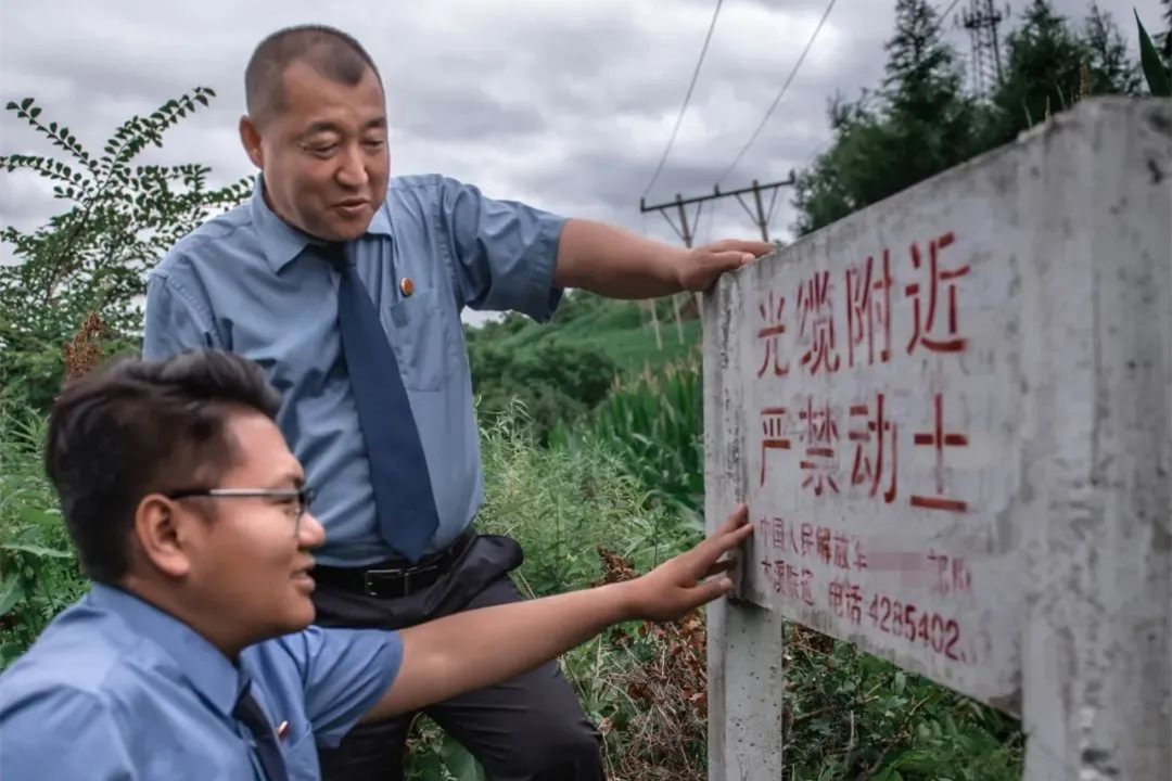 ▲检察干警丈量违法压占埋地军用输油管道的地上建筑