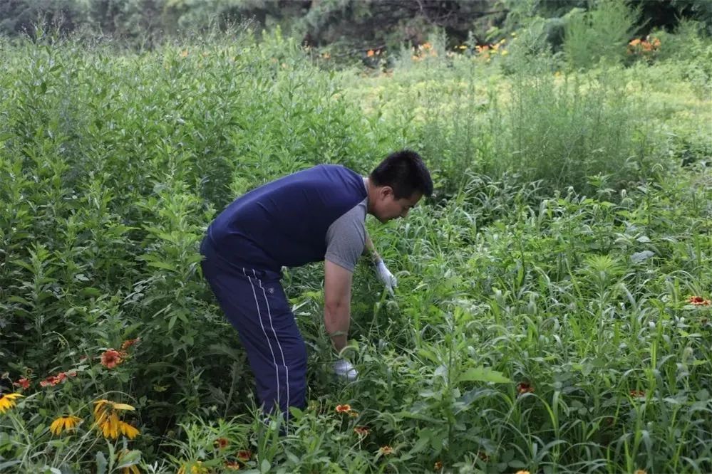 干警们热情高涨、干劲十足。大家分工明确,各司其职,有的人拿着镰刀在草丛中、树林里认真寻找并清除豚草,有的人将拔掉的豚草集中堆放。尽管汗流浃背,但大家士气不减。经过近两个小时的劳动,干警们将责任区域内的豚草全部清理干净。
