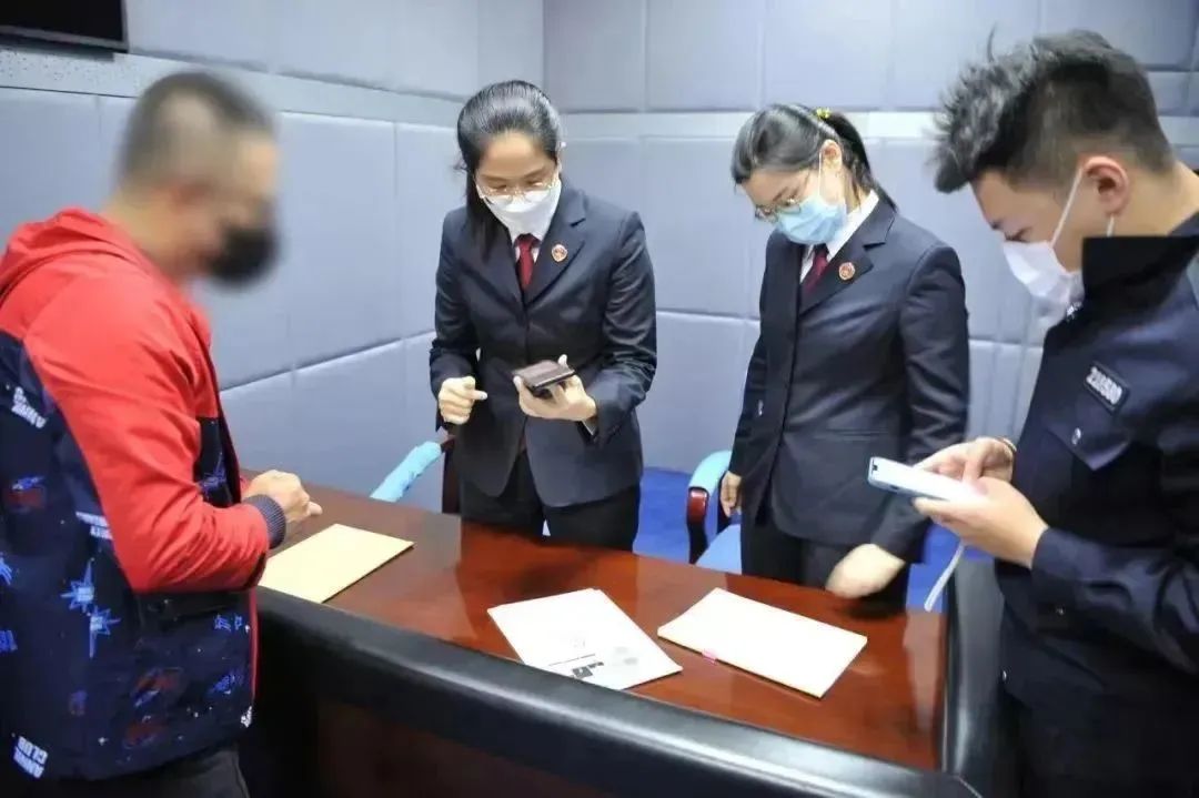 ▲检察、公安干警现场指导犯罪嫌疑人使用“非羁码”
