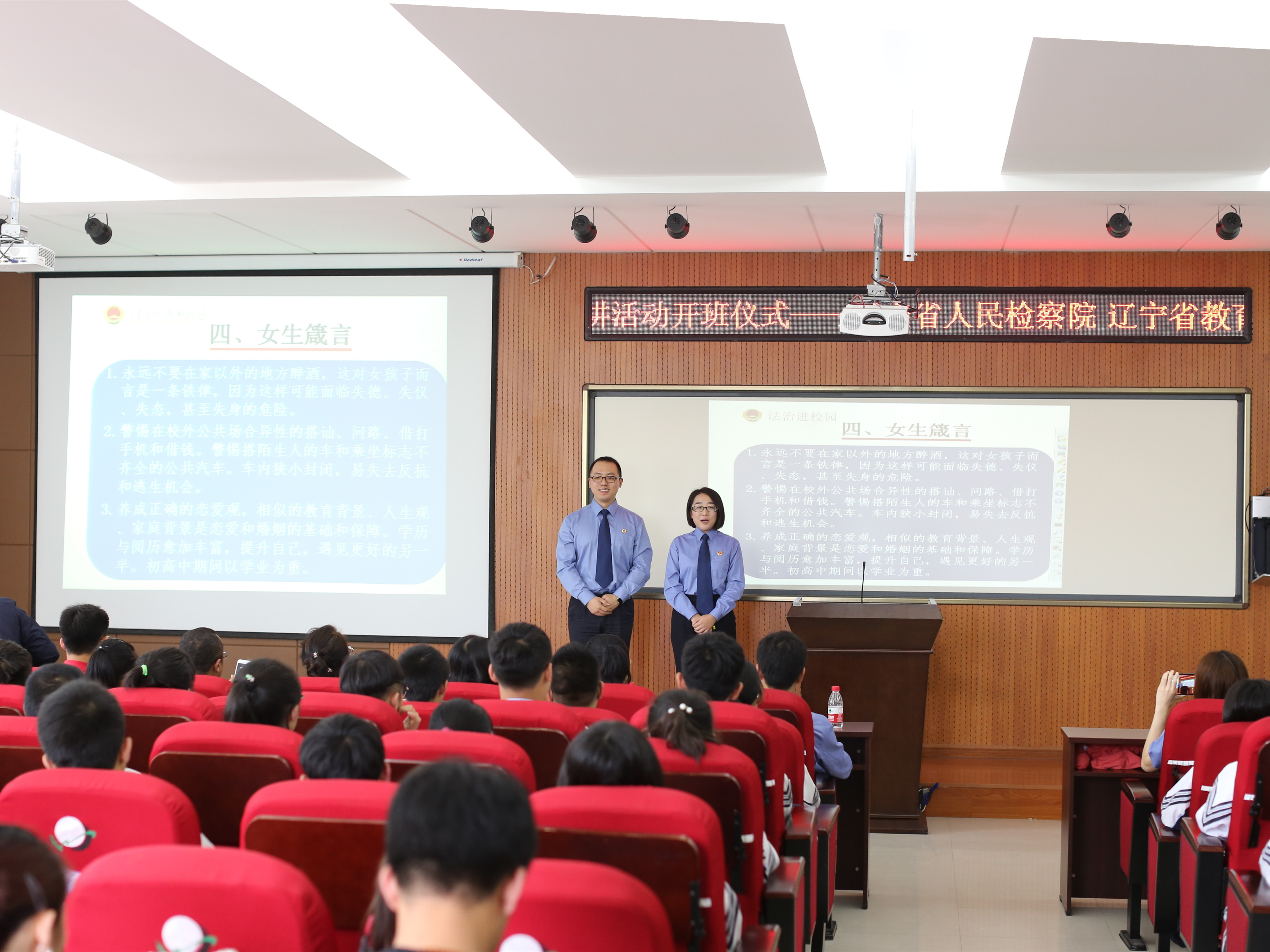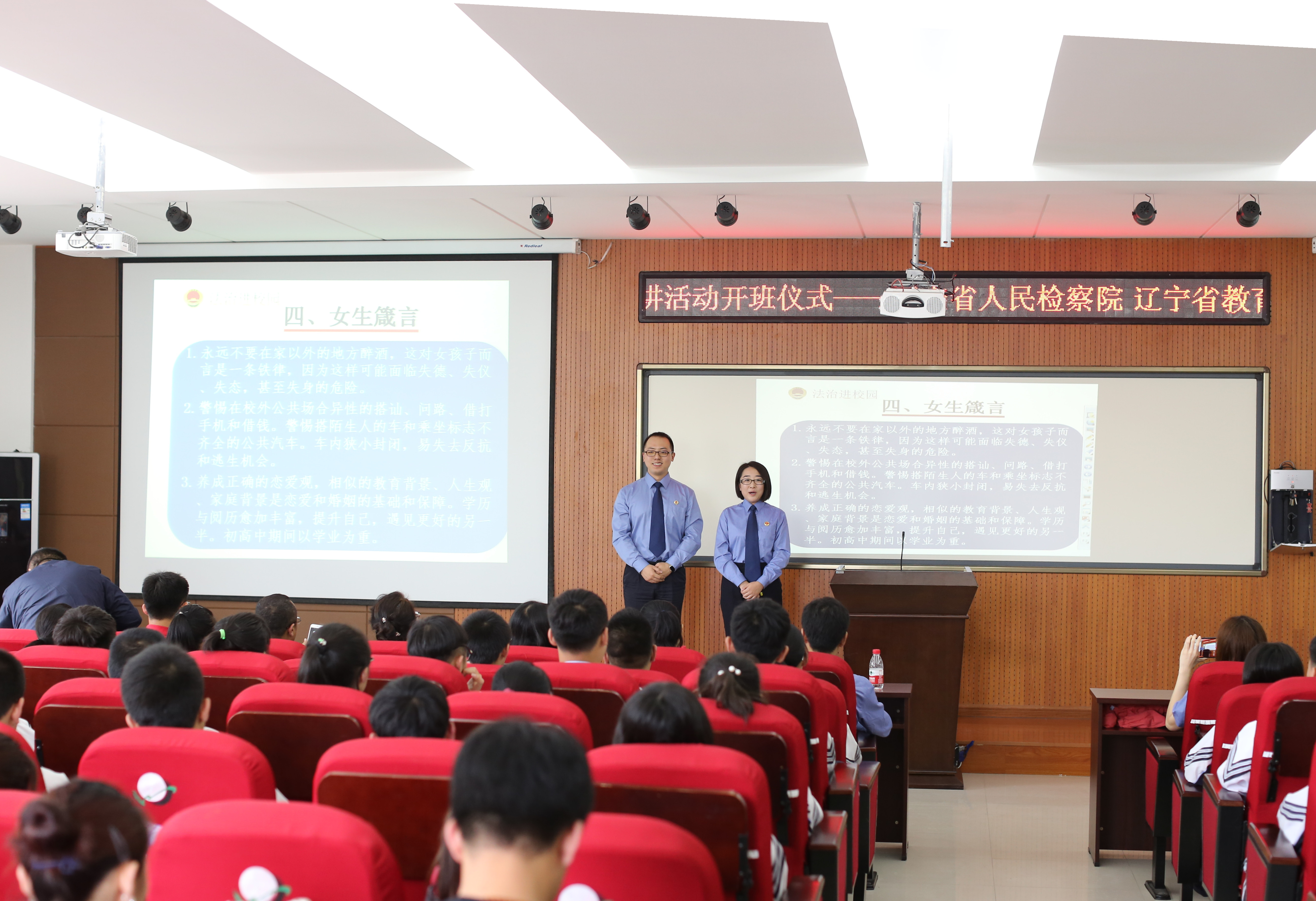 为进一步深化检校合作,推动“法治进校园”活动制度化、常态化建设,球速体育 组织开展了领导干部送法进校园、担任“法治副校长”活动。球速体育 李成林检察长以上率下,亲自担任沈阳二中法治校长并到校讲授法治课。球速体育 第九检察部全体人员均受聘担任了法治副校长。截至目前,全省共有326名检察机关领导干部担任中小学“法治副校长”,其中检察长96人,副检察长181人,其他领导干部49人。担任“法治副校长”工作的深入开展,增强了法治教育深度,有效助力了平安校园建设。