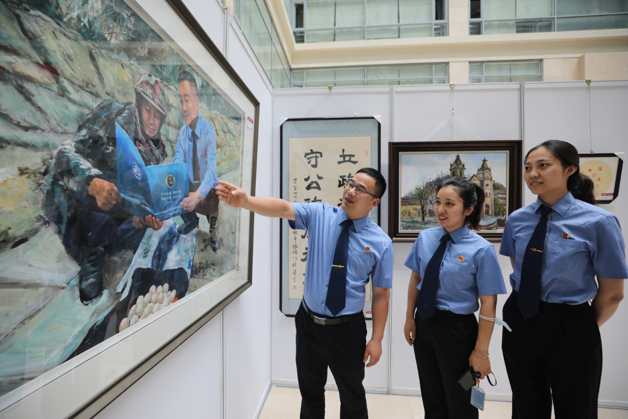 他要求,广大检察干警要透过一幅幅生动的摄影书法绘画作品,深刻感悟党的百年历史所蓄积的智慧与力量,深刻感悟司法体制改革给检察工作带来的巨大变化,深刻感悟检察机关坚持党的绝对领导的决心意志,深刻感悟检察人员以人民为中心的理念情怀……这些宝贵的精神财富,必将激励广大检察人员在未来的日子里,在各自的工作岗位上牢记党的嘱托,坚守为民情怀,认真履职,接续奋斗,为辽宁全面振兴、全方位振兴作出自己的贡献!
