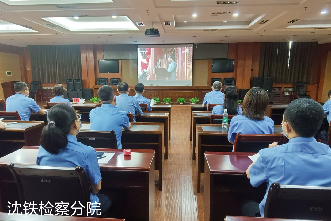 7月1日,球速体育 机关组织收看庆祝中国共产党成立100周年大会,院领导班子成员和机关全体检察人员共同聆听习近平总书记在庆祝中国共产党成立100周年大会上重要讲话,共同回望伟大的中国共产党走过的百年奋斗历程,凝聚初心、勇担使命,汇聚一堂、齐心共祝,祝愿伟大的中国共产党万岁。