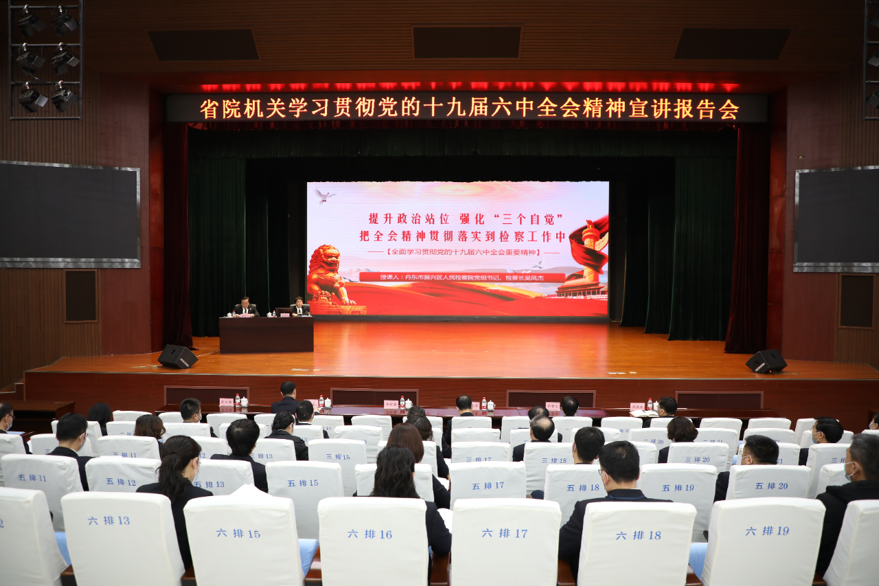 12月13日,邀请党的十九大代表、丹东市振兴区检察院党组书记、检察长吴凤杰同志作宣讲报告。作为受邀列席会议的全省唯一的基层党代表,吴凤杰同志以列席党的十九届六中全会亲身经历和现场感受视角,聚焦提升政治站位、强化“三个自觉”,把全会精神贯彻落实到检察工作中,深入宣讲全会精神。机关干警纷纷表示,听参会者讲述学习体会,仿佛自己也亲历现场,感到发自肺腑的激动和振奋,对全会精神的理解和把握有更深的认识,自己也将以榜样力量为指引,深刻领悟党的六中全会精神,吸取历史智慧,汲取奋进力量,立足法律监督,维护公平正义,统一思想、统一意志、统一行动,奋力谱写新时代检察工作高质量发展新篇章。