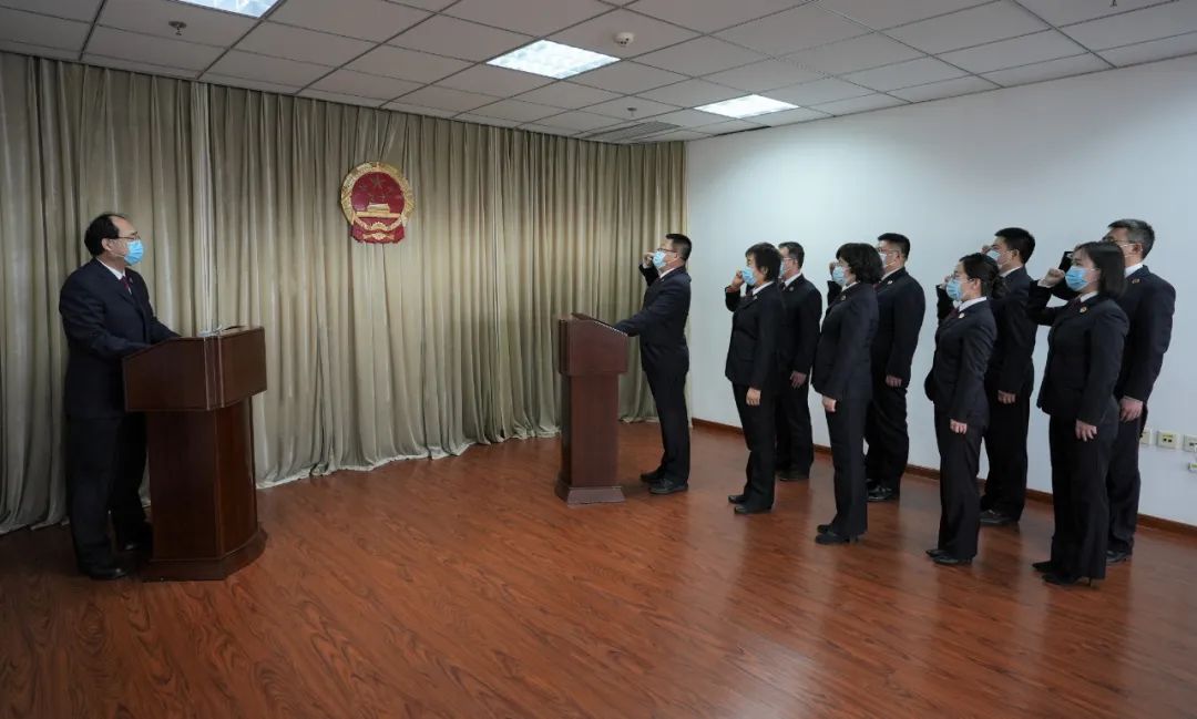4月28日上午,球速体育 组织宪法宣誓。省人大常委会及球速体育 党组近阶段任命的检察委员会委员、检察员和中层干部9人面向国徽,举起右拳,庄严宣誓。受球速体育 党组书记、检察长李成林委托,球速体育 分管日常工作的副检察长吴言军主持宣誓仪式并监誓。