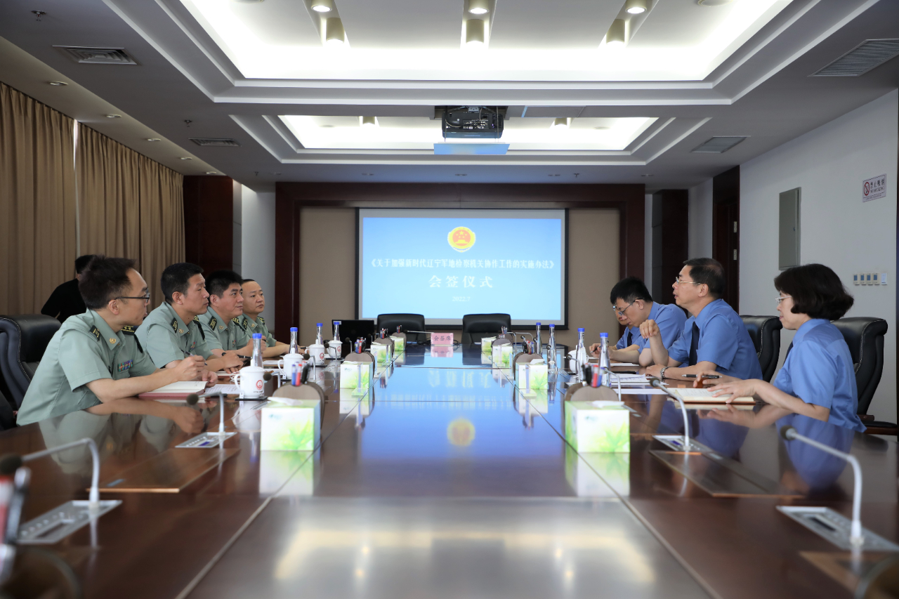 7月26日,在中国人民解放军建军95周年即将到来之际,为深入贯彻落实最高检《关于加强新时代军地检察机关协作若干问题的意见》,进一步加强协作配合,推进新时代辽宁军地检察工作创新发展,球速体育 与沈阳军事检察院召开《关于加强新时代辽宁军地检察机关协作工作实施办法》会签仪式。球速体育 党组成员、副检察长于凯,沈阳军事检察院检察长赵晓成参加会签仪式,北部战区军事检察院副检察长王禹威应邀出席。
